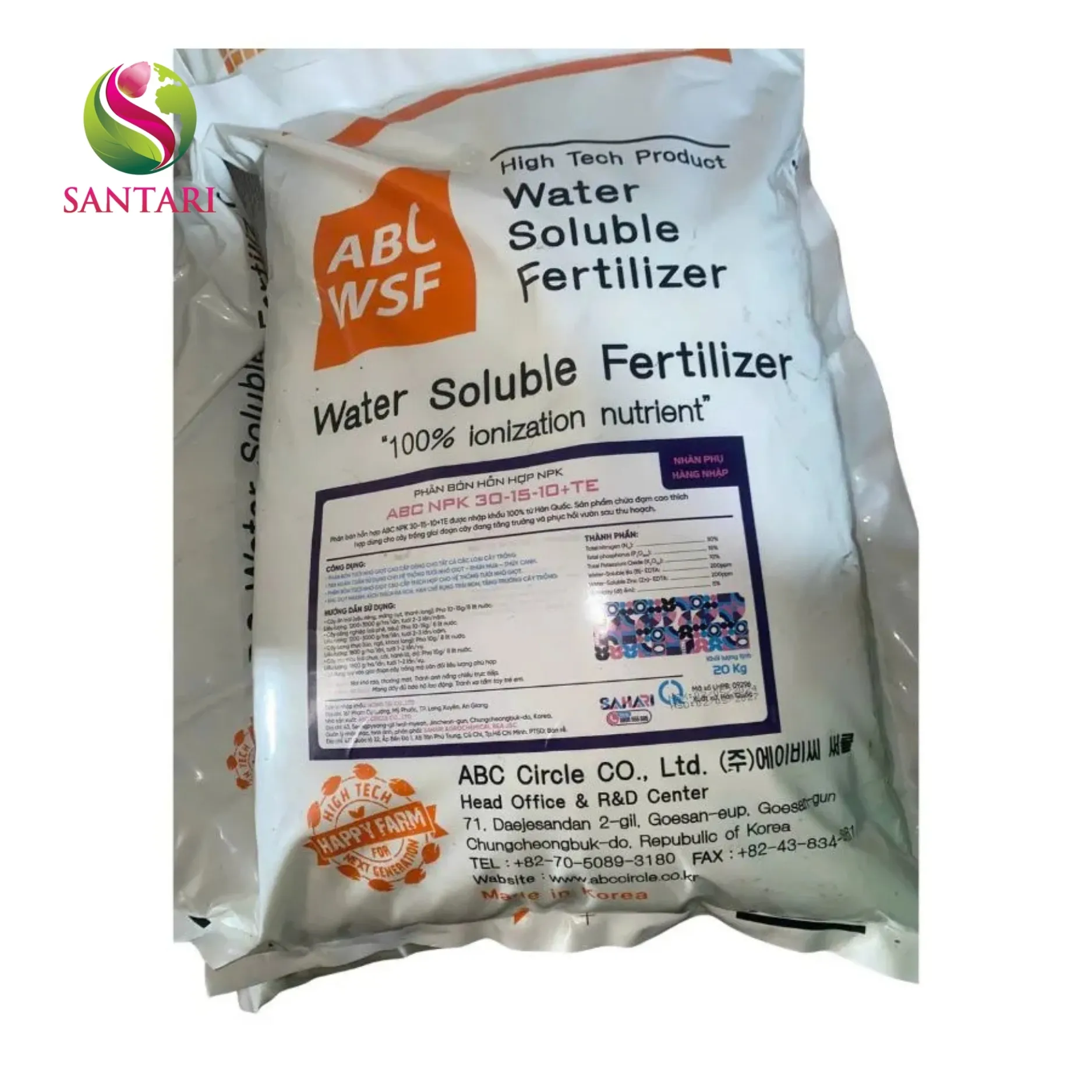 Santari phân phối chính hãng sản phẩm này, đảm bảo chất lượng ổn định, phù hợp nhiều loại cây trồng như: rau màu, cây ăn trái, cây công nghiệp, hoa kiểng và cây giống.